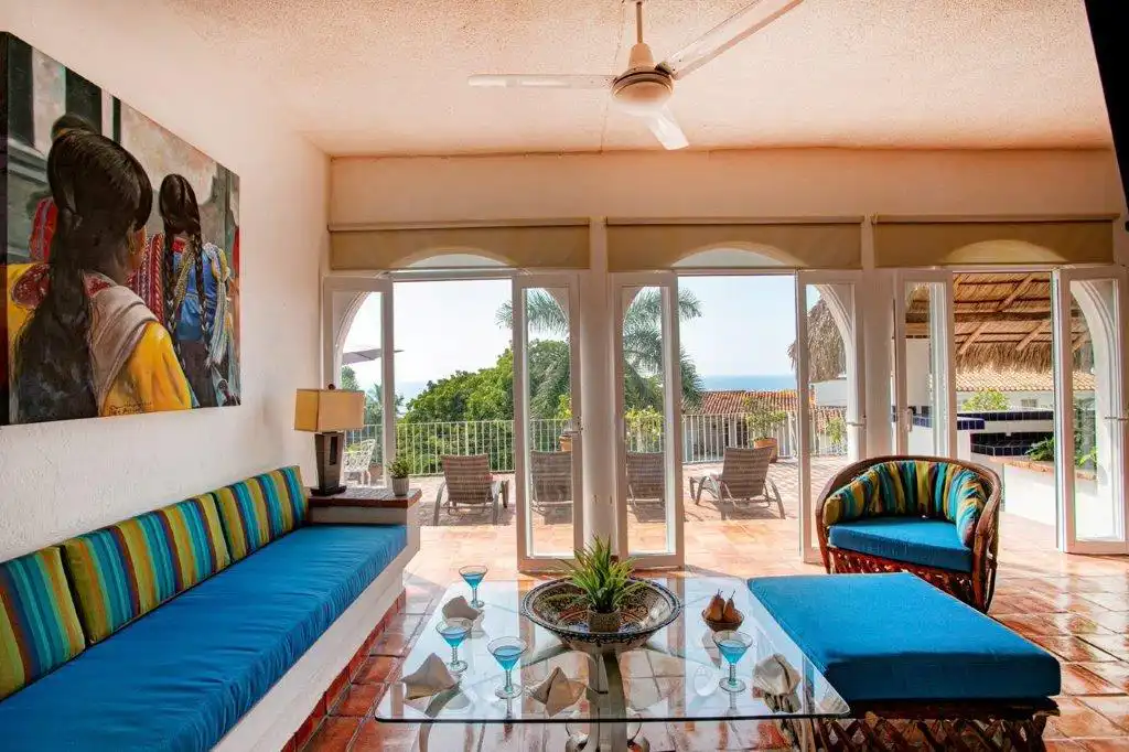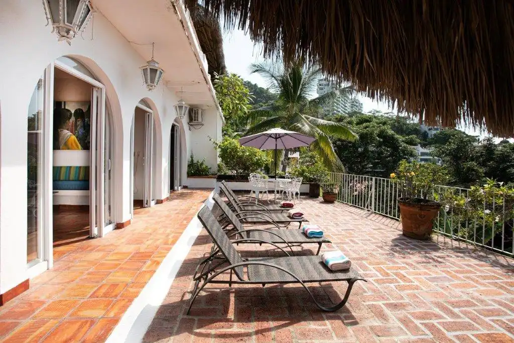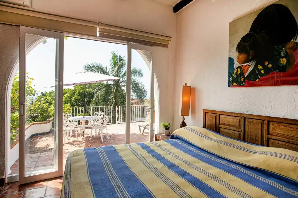There are 2 terraces. The large one spans the width of the property, and has its own bar. The space is open, and is a perfect spot to hold a cocktail party, wedding or special event. It has expansive views of Old Vallarta and the bay.